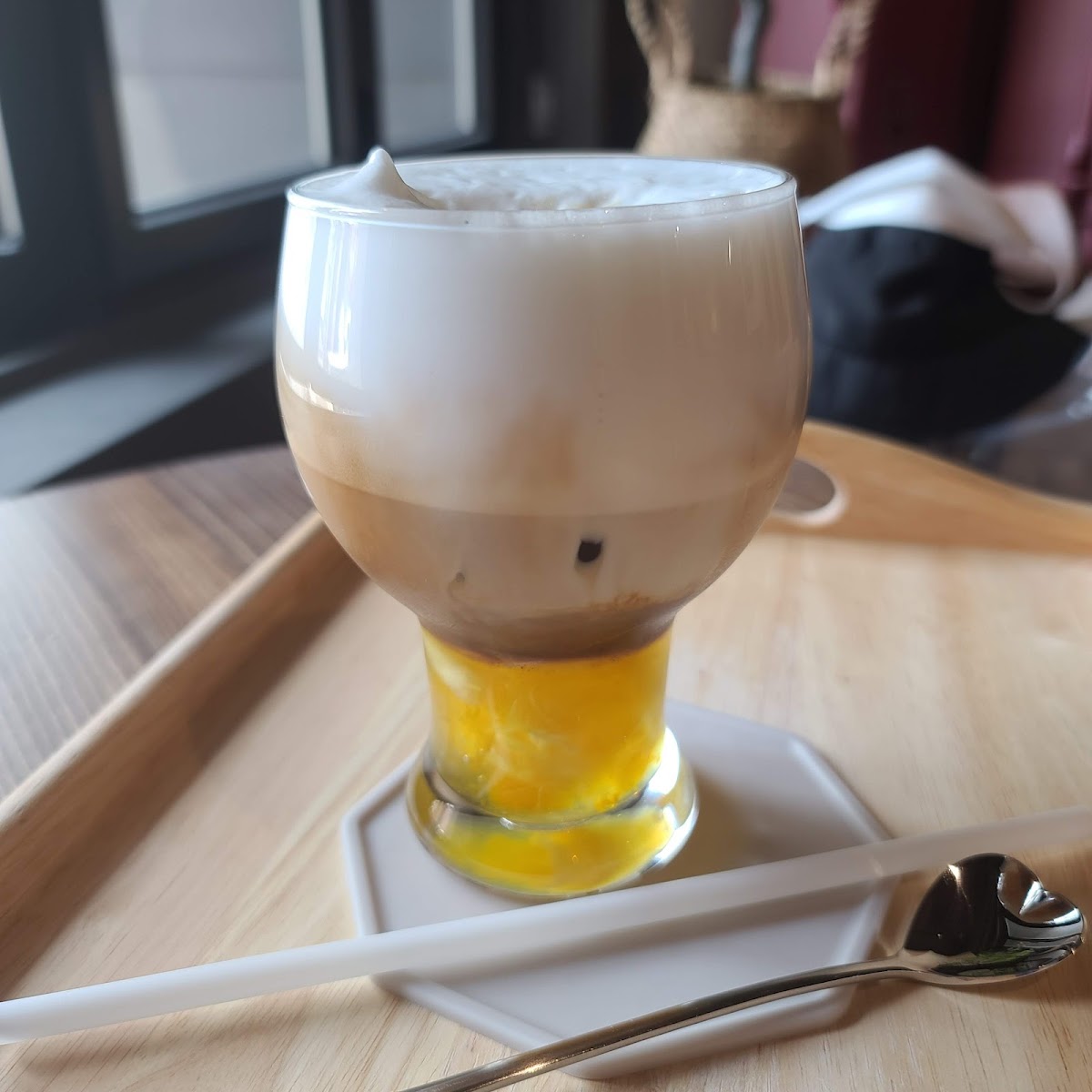 As soon as you step inside, you're greeted by a unique interior that fuses traditional elements with a contemporary touch, creating an inviting atmosphere perfect for a casual catch-up or a quiet moment alone. The small outdoor seating area, akin to a charming courtyard, adds to the cafe's allure, allowing you to soak in the neighborhood's vibrant energy while enjoying your treats.